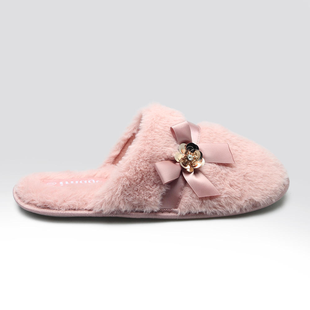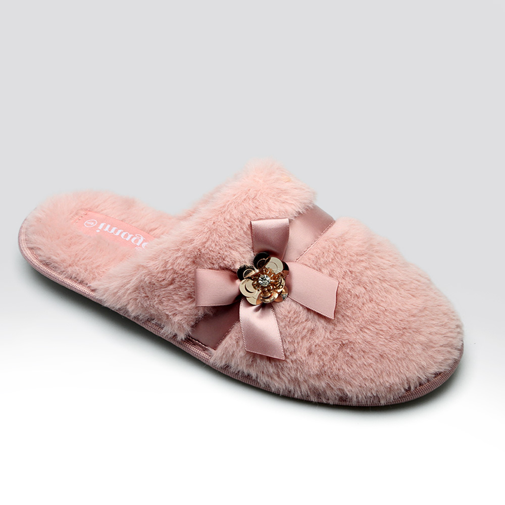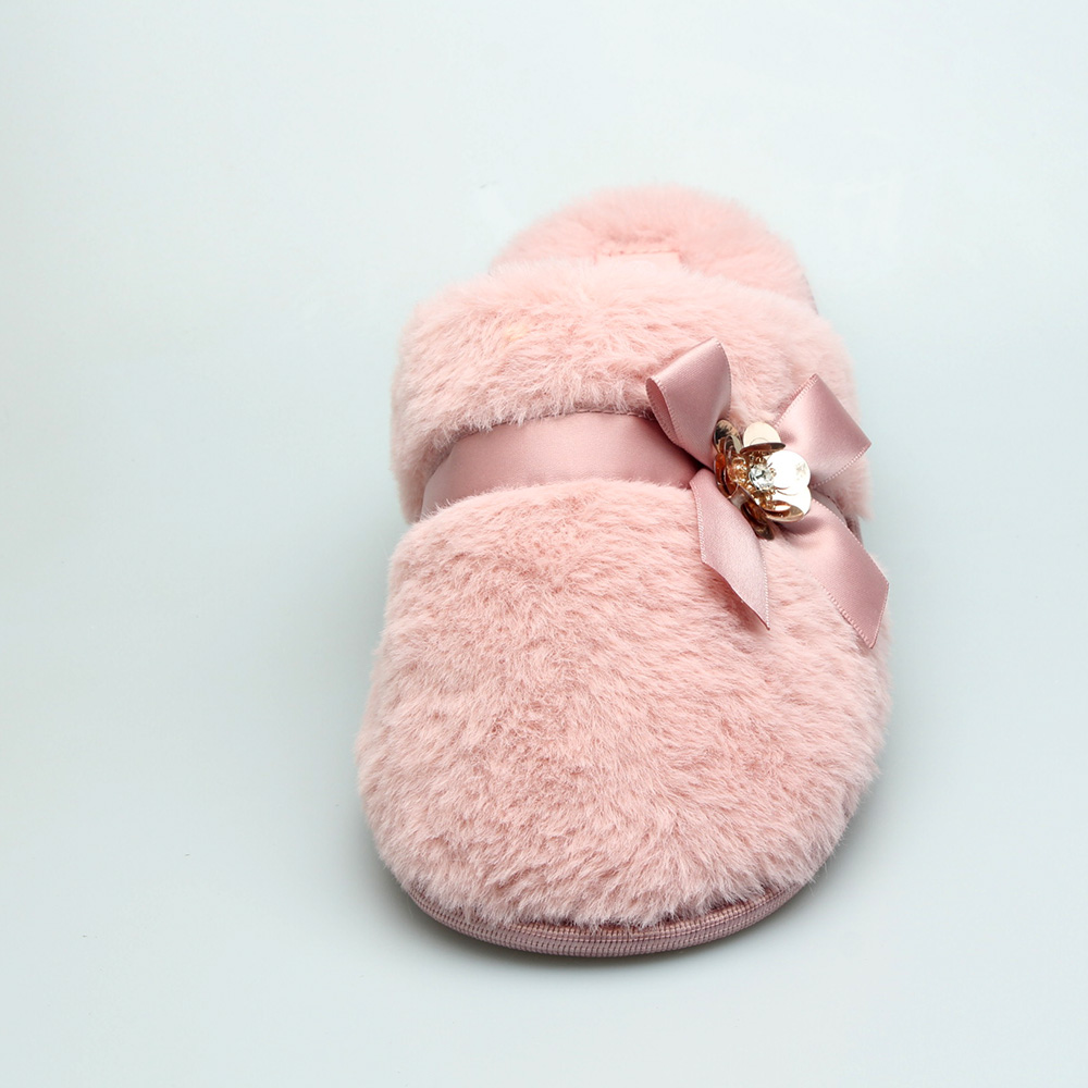 Fashion slip on Mule Style Furry Women Indoor Slipper with Bow