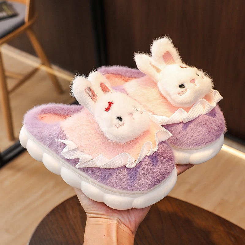 New Autumn and Winter Cute Cartoon Fur Plush Home House slippers for Kids Soft Warm Anti slip Girl Women Furry slippers