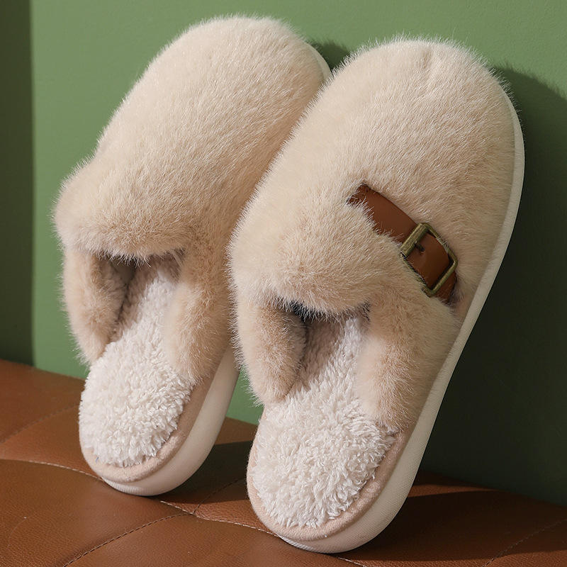 Unisex New Fashion Trend Faux Fur Home Indoor slippers Female Anti slip Thick Soled Plush Cotton Winter Shoes